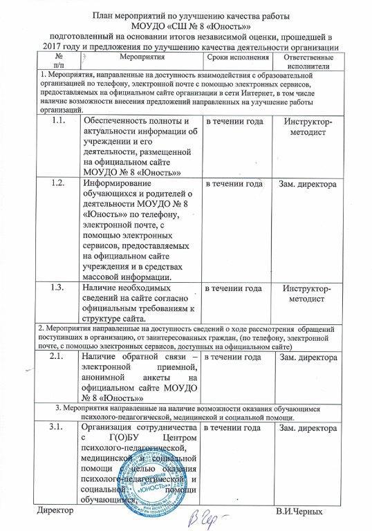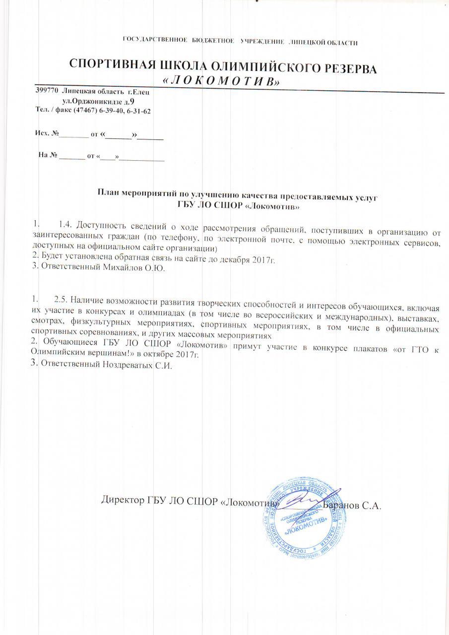 Планы мероприятий по улучшению качества работ учреждений по результатам итогов независимой оценки в 2017 году