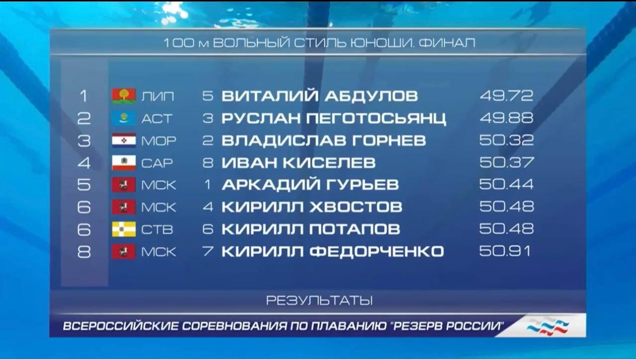 - 100 м вольным стилем — 49.79